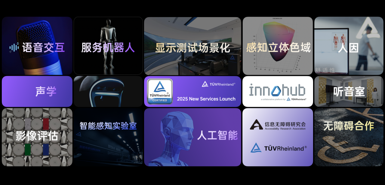 在声学板块发布环节,TÜV莱茵详细介绍了涵盖声学实验室、多阶段的“语声聚莱”服务技术开发路线、多模态感知与场景融合及全消室等核心测试设备的服务能力,重点聚焦声学技术研发与实际应用场景的深度融合。TÜV莱茵依托基础声学的参数测量,关注声音多模态物理量检测,深入研究人因听觉感受、人居环境与生态声学适配关系,致力于实现人、科技与环境的声学和谐平衡。