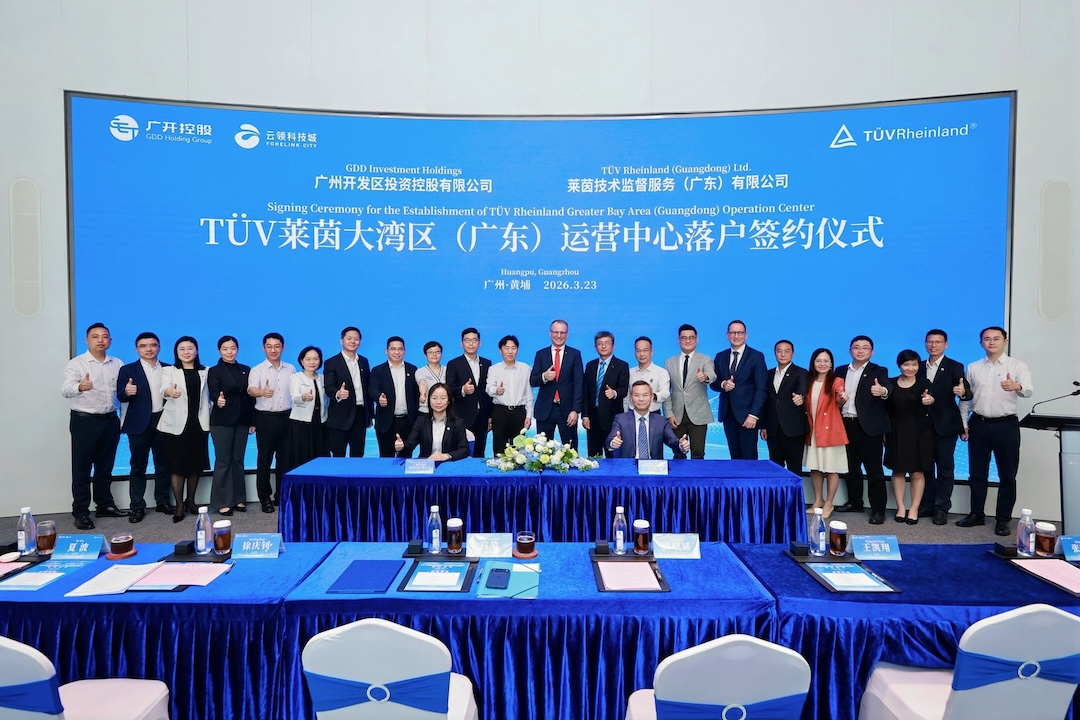 3月23日,富笔博士出席TÜV莱茵与广州开发区控股集团的签约仪式,见证TÜV莱茵大湾区(广东)运营中心正式落户广开云领科技城。该中心规划建设面积约20000平方米,将打造集检测认证服务、研发、能力建设于一体的一站式服务平台,聚焦新能源、人工智能、新型储能、智能装备、低空装备等新兴领域,为粤港澳大湾区战略新兴产业提供检验、检测、认证等全链条国际认可服务。