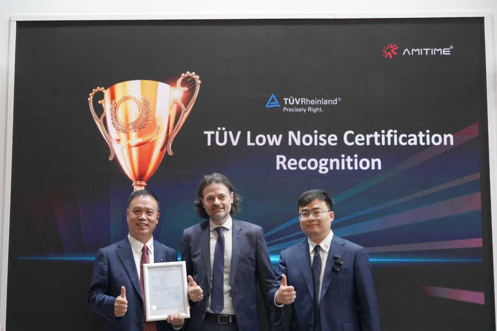 TÜV莱茵为Amitime采暖机颁发噪声符合性证书及MCS证书